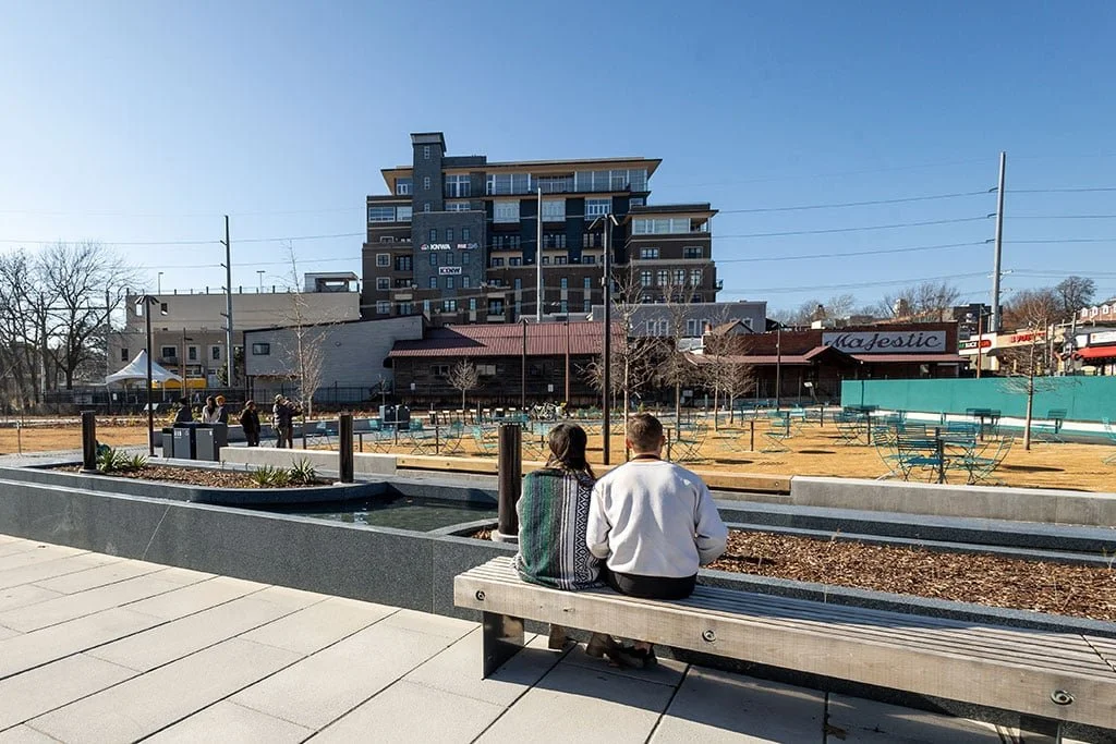 Located between Center Street and Dickson Street, the Upper Ramble replaces a former parking lot southwest of Dickson and West Avenue, transforming what was once vehicular space into a lush, vibrant public gathering spot.