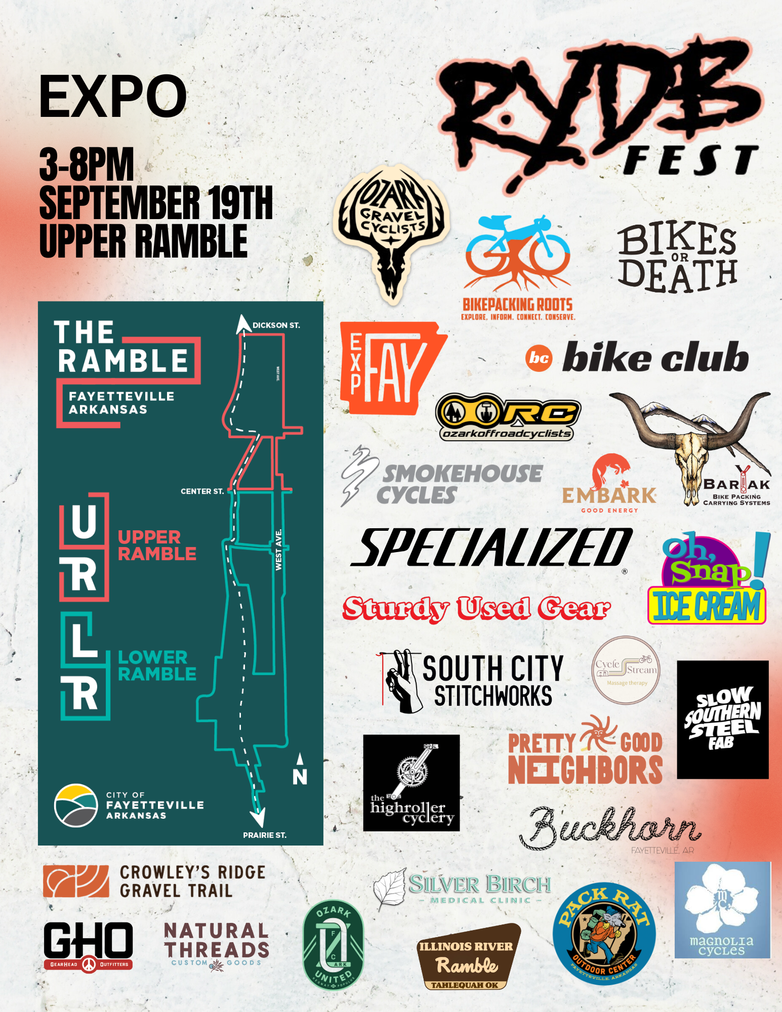 A multi-day celebration of cycling, community, and craft based in downtown Fayetteville, Arkansas. The festival includes: